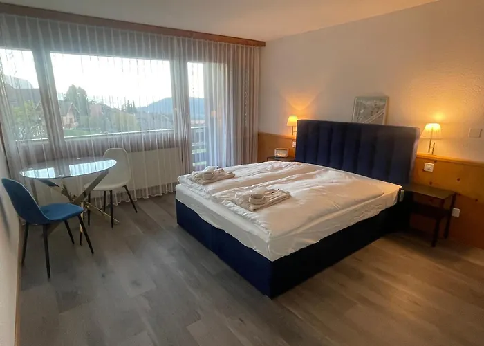Situated merely 6 minutes' walk from Reformierte Kirche Aeschi Church, the 1-room Alpenblik Aeschi Bei Spiez apartment entices guests with a Jacuzzi, a sauna, and an indoor pool. Panoramabrucke Sigriswil Bridge is located around 7 km away, and Lake Thun is within 10 minutes' drive of the property.